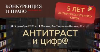 Новая встреча Антимонопольного клуба на площадке журнала «Конкуренция и право» прошла на отлично: 5 декабря 2023 г. мы отметили пятилетие нашего дискуссионного проекта и, что символично, обсудили пятый пакет. 09.01.2024